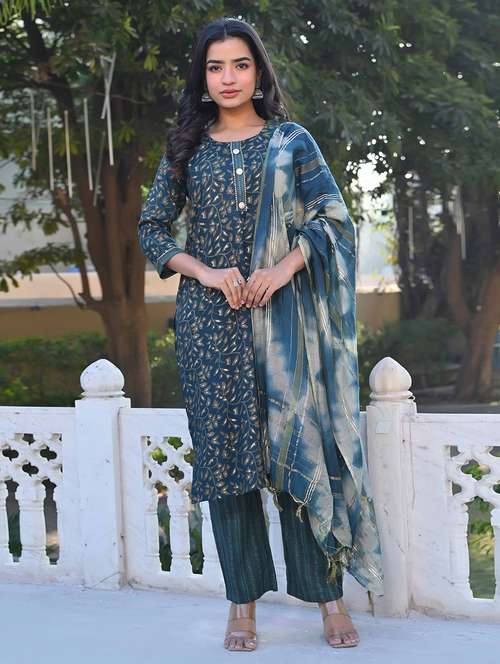 - Find gorgeous sets of ethnic wears in trending designs in teal colors suitable for casual wear of occasions.