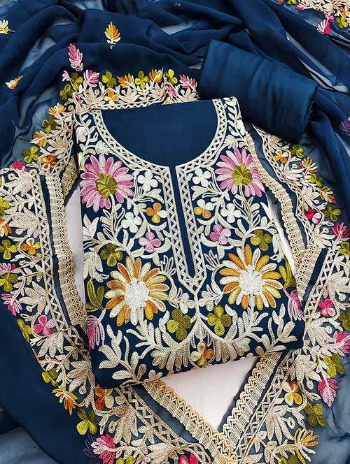 - Look ultra gorgeous in unstitched suits from Peachmode and grab these beautiful suits in blue colour.