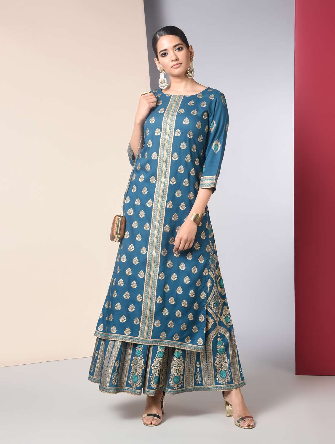 - » gold print kurta palazzo set