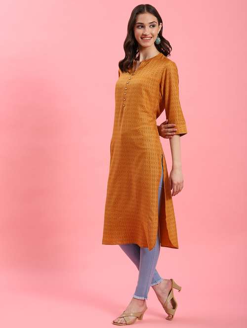 - Grab this beautiful kurta made up of rayon fabric featuring mandarin collar neck designs.