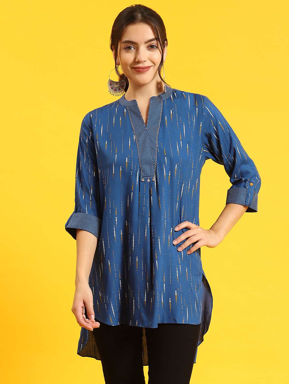 - » women blue rayon high low tunic