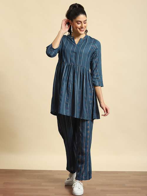 - » women tael stripes mandarin neck co-ord set