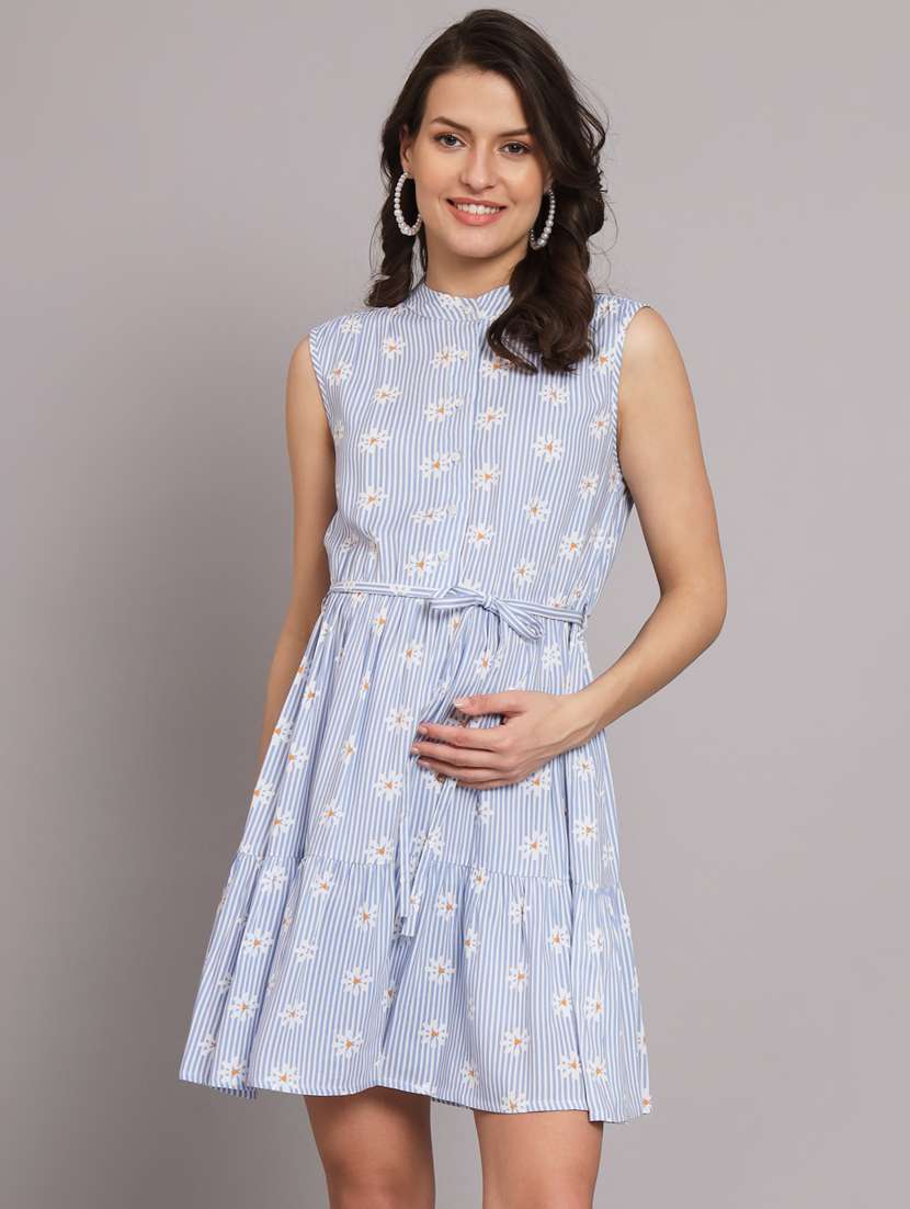 blue striped maternity wear dress