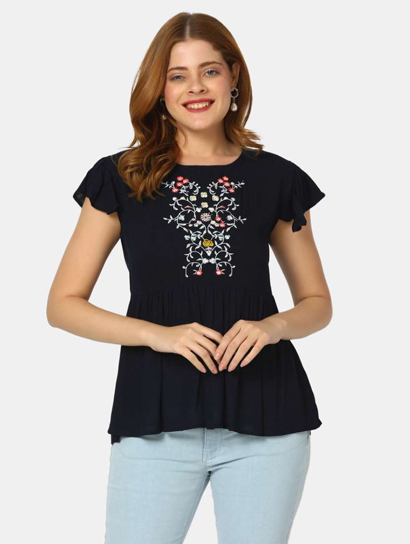 boat neck floral peasant top - 19860620 - Very Small Image - 1