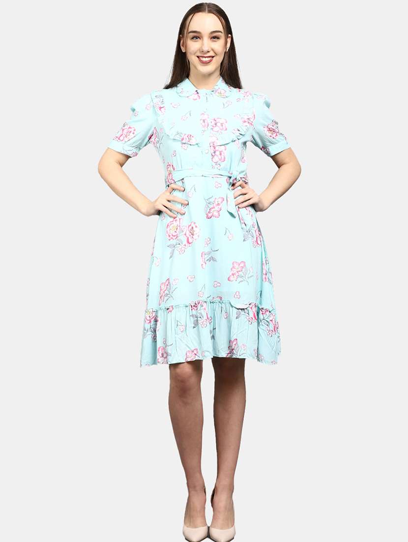 blue rayon fit & flare dress