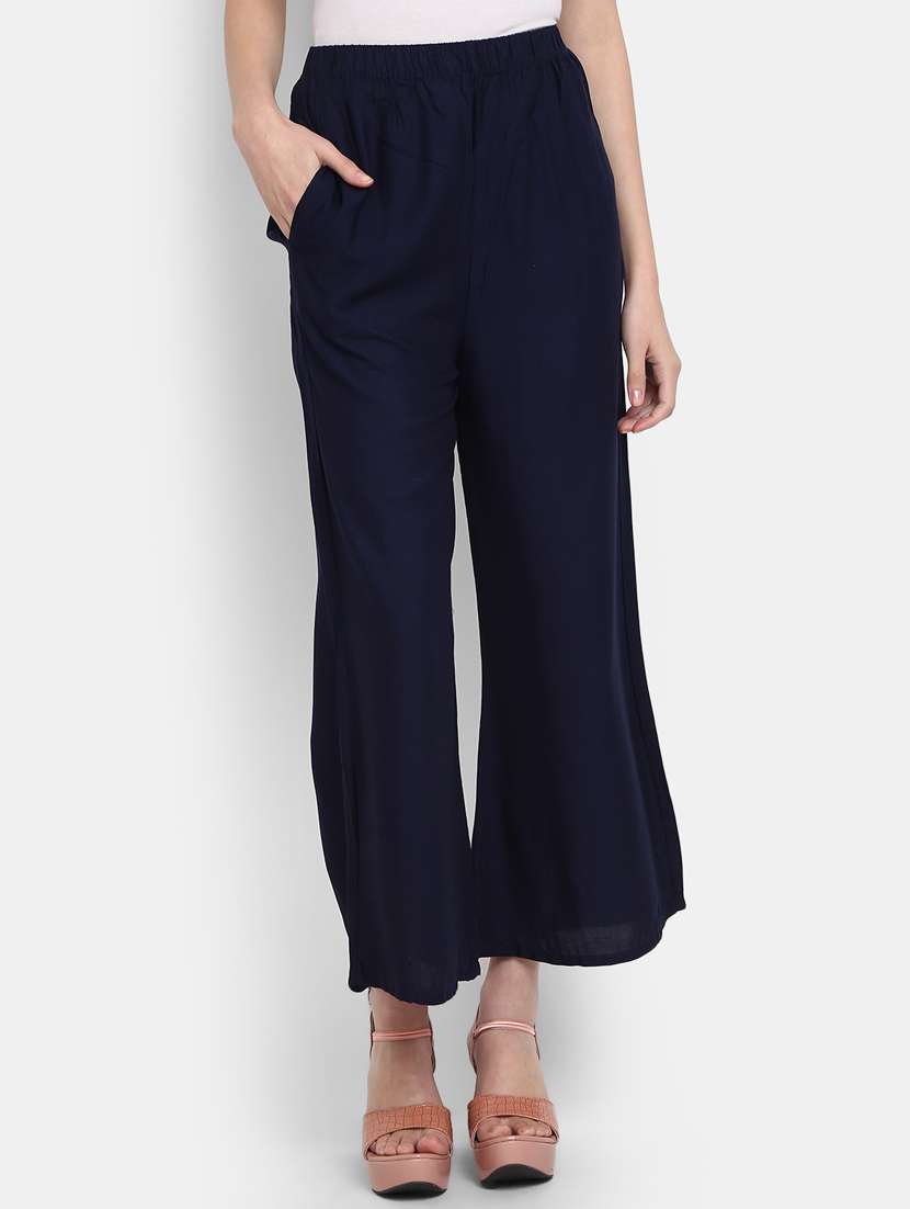 - » navy blue solid straight palazzo