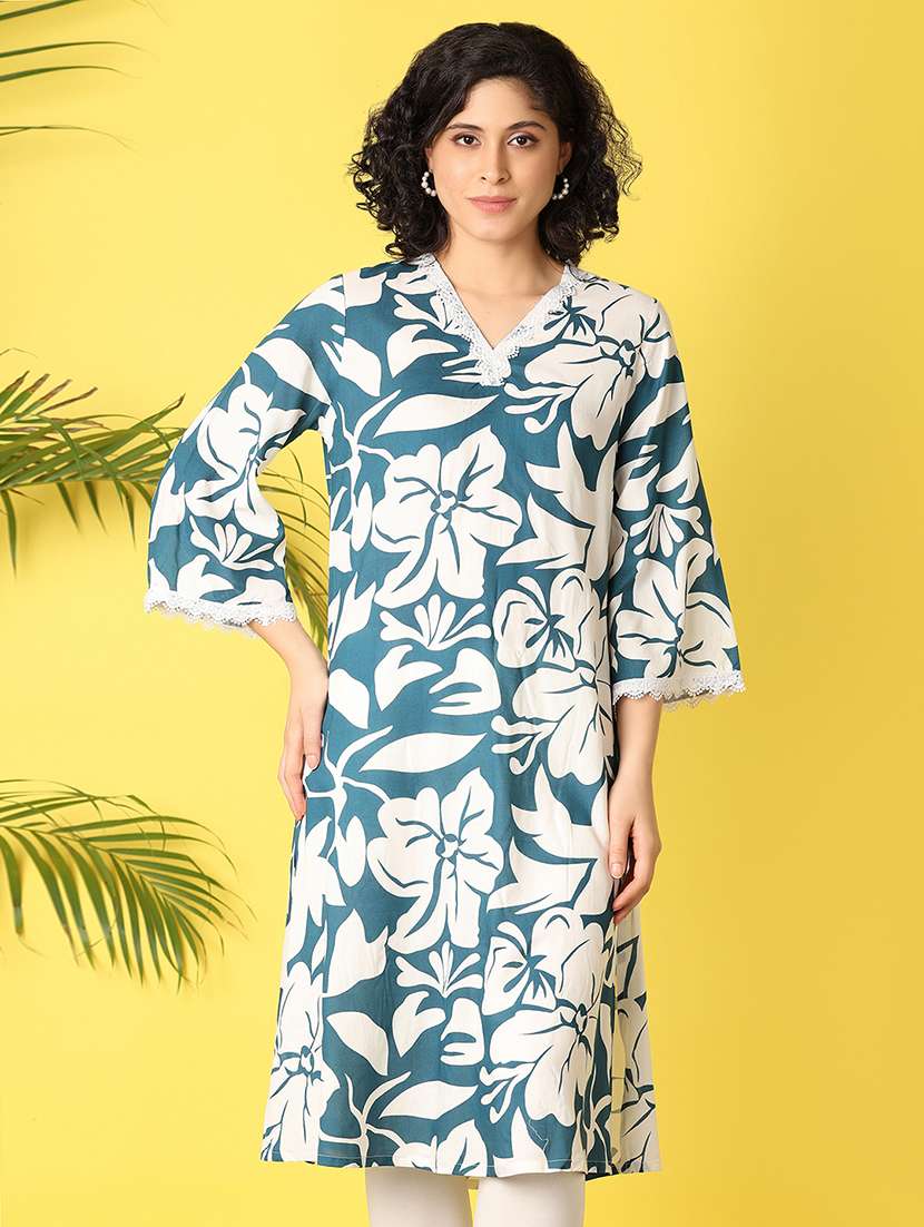 - » women blue floral printed straight kurta