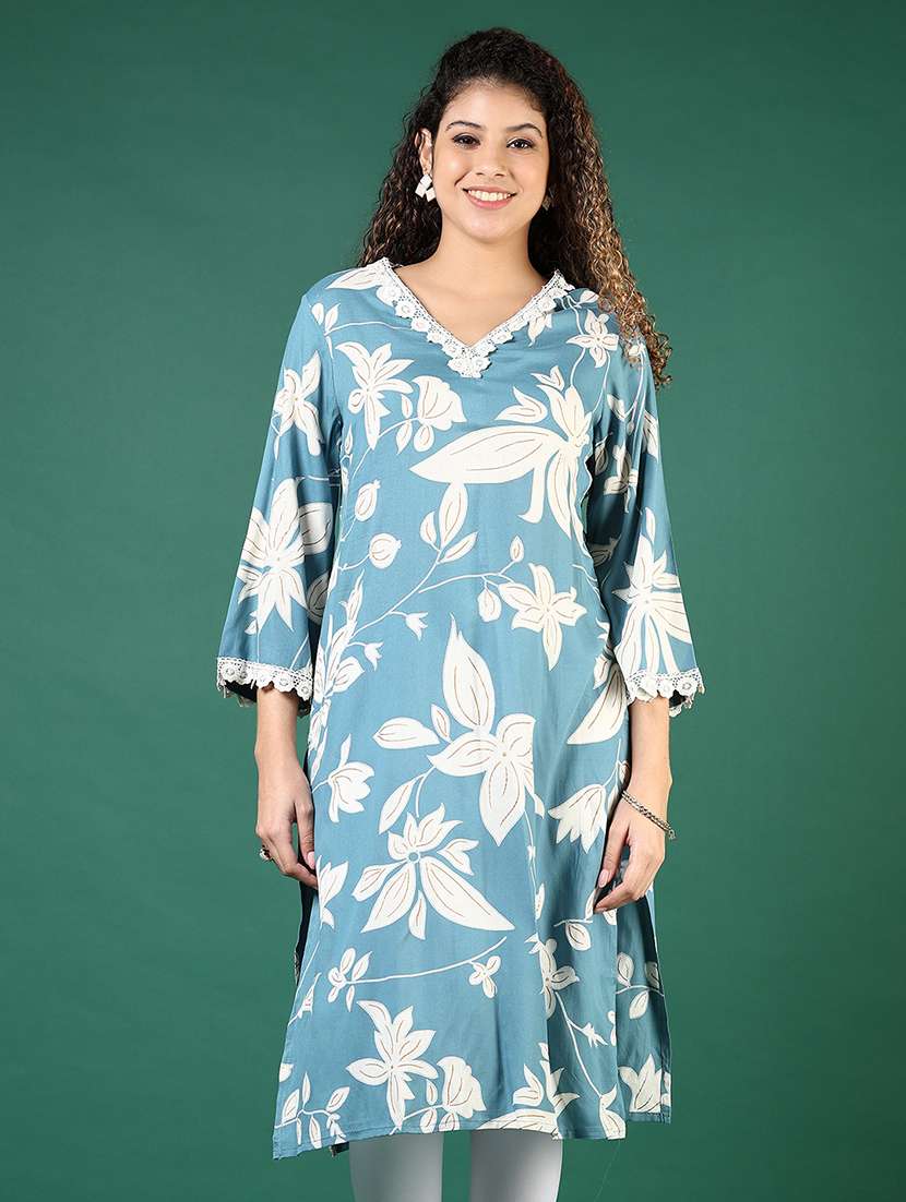 - Grab this beautiful kurta made up of rayon fabric featuring v neck neck designs.