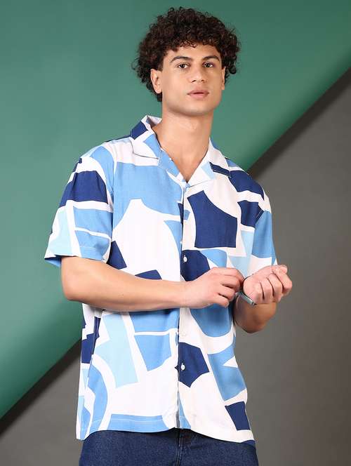- » men printed cuban collared casual shirt