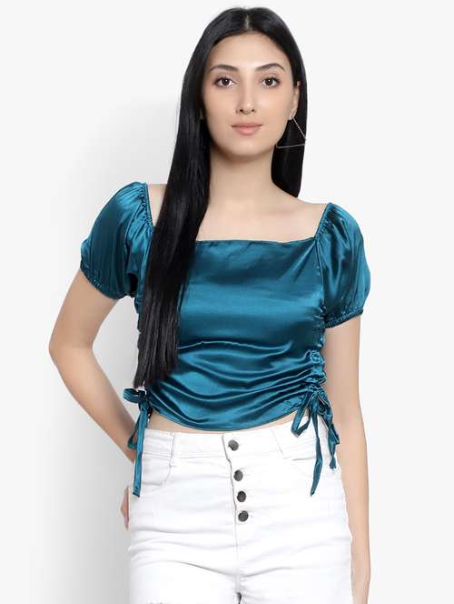 - Opt for this top made up of satin material and get it in a varied neck design.