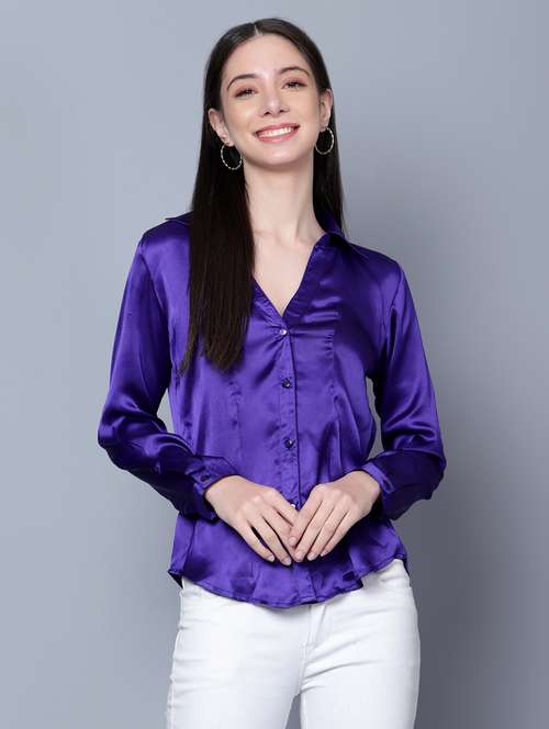women blue solids long sleeves shirts
