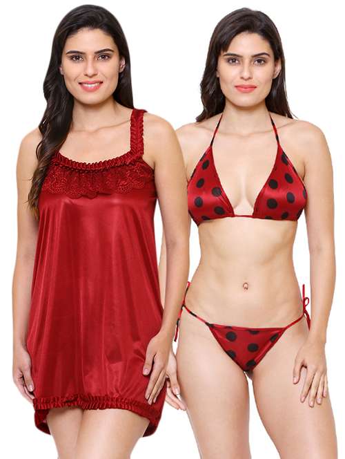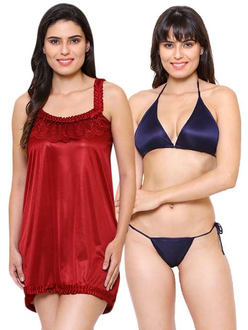 - Sleep in comfort with our wide range of women’s nightwear sets made of super cozy satin fabrics and cami neck designs available only at LimeRoad.