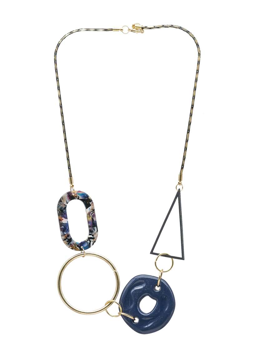 blue satin less steel long necklace