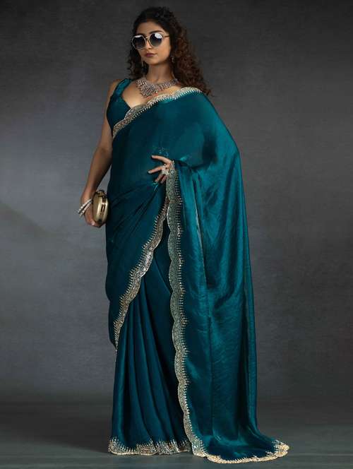 This stunning Blue satin silk saree, adorned with sparkling stone work that adds a festive and glamorous touch. The smooth satin silk fabric offers a lustrous finish and graceful drape, making it comfortable yet eye-catching. This saree is paired with a matching unstitched satin silk blouse piece, allowing you to customize the design as per your style. Perfect for parties, receptions, and evening functions, this saree beautifully combines elegance with modern appeal.