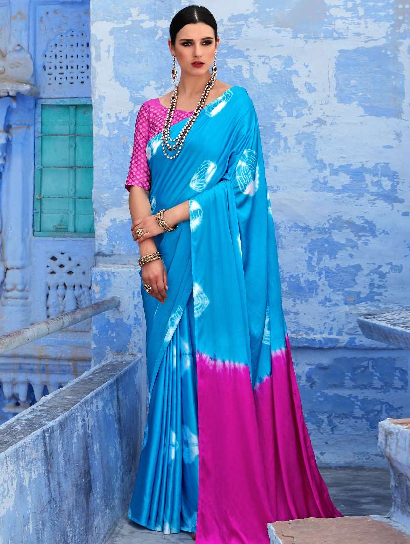 contrast pallu tie & dye saree with blouse