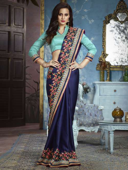 - » floral resham thread work bordered saree with blouse