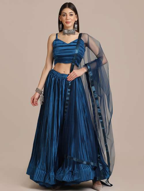 - » blue pleated flared lehenga with dupatta