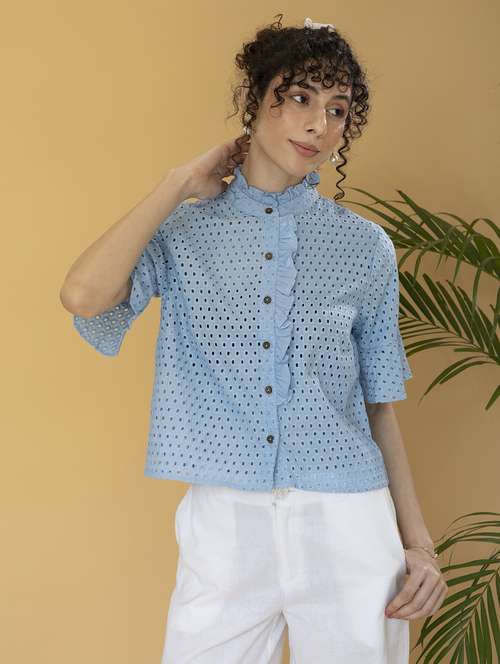 women light blue schiffli shirt top - 21295518 - Very Small Image - 1