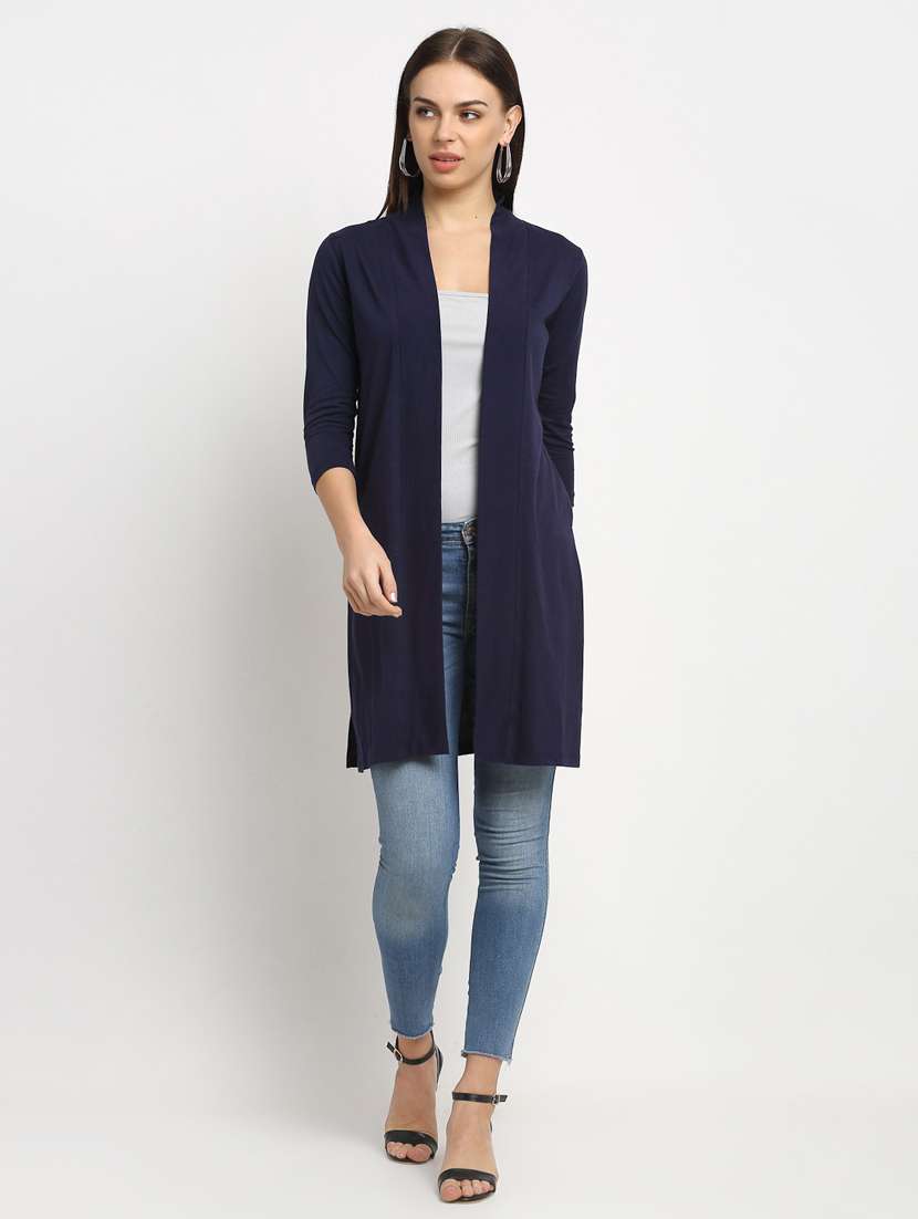 women navy blue solid long sleeve regular shrug