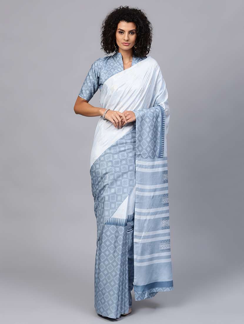 - » geometrical foil printed saree with blouse