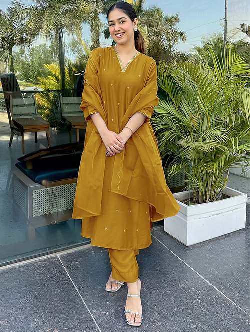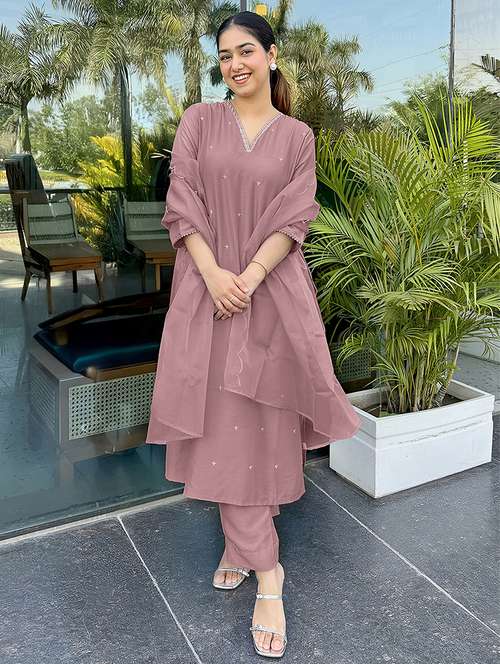 - Browse through the latest range of ethnic sets for women with tailored sleeve designs with embroidered works.