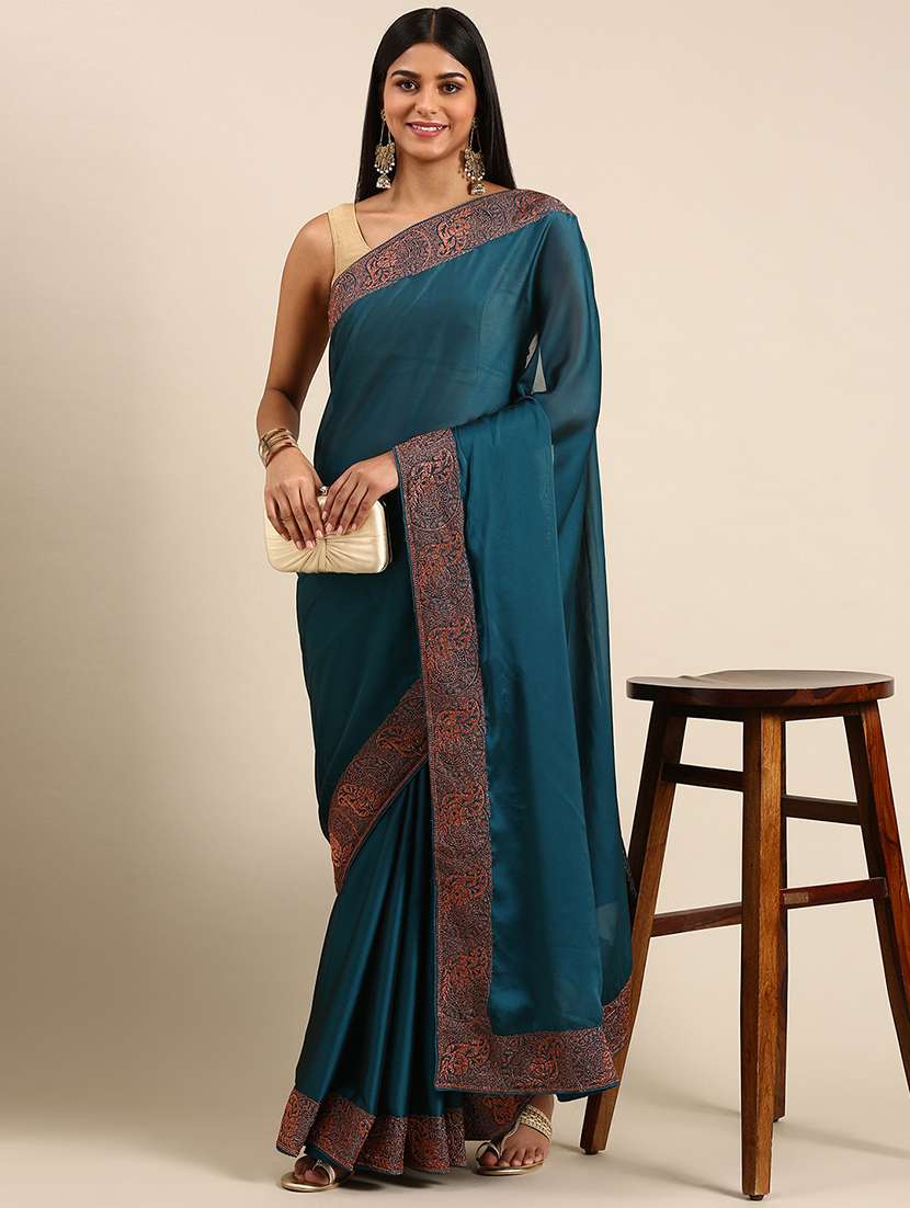 The blouse worn by the model might be for modelling purpose only. Check the image of the blouse piece to understand how the actual blouse piece looks like.