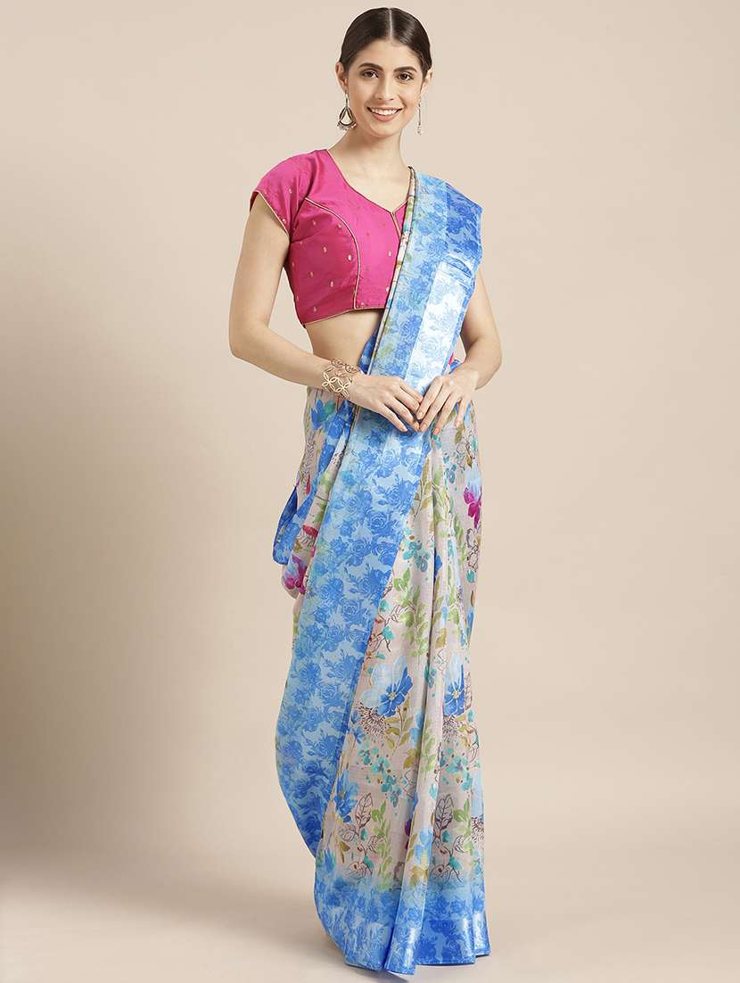 Kimisha Presents Beautifully Designed Digital print Silk Blend Saree has Printed Satin Border. This Saree Comes With Matching Silk Blend Blouse Piece. It Can Be Worn To Festive Occasions Or Party, Marriage Occasion Wherever You Want To Flaunt Your Style With This Outfit. This Saree Would Add Elegance To Your Look. Wear It At Any Occasion By Pairing It With Matching Ethnic Jewelry Like Ethnic Jumkas & Bangals And Ethnic Footwear Like Mojaris, Juties & Fashion Sandals To Get Complete Ethnic As Well As Fab Festive Look & Get Complimented For Your Impressive Choice.