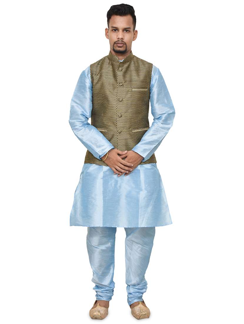 - » blue silk blend kurta pyjama with jacket ethnic wear set