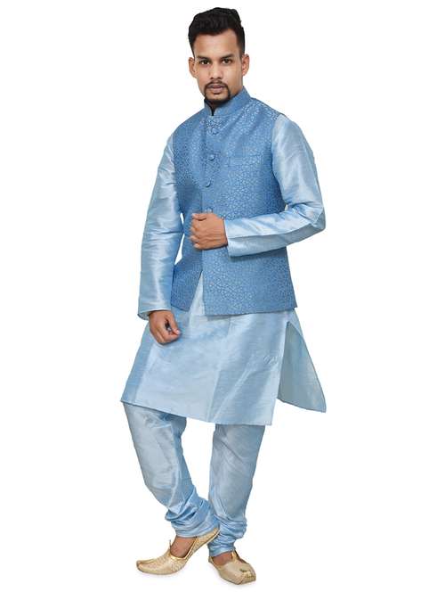 - » blue silk blend kurta pyjama with jacket ethnic wear set