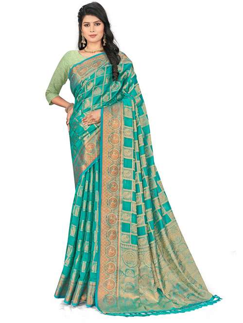 - » women's self design mint colored saree with blouse