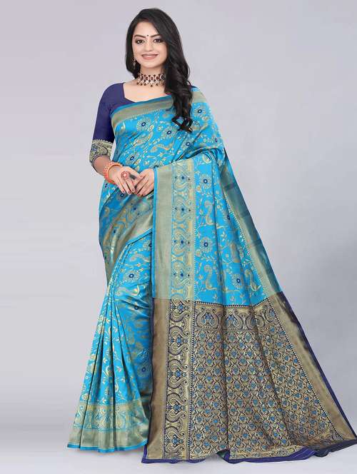 - » blue silk blend banarasi saree