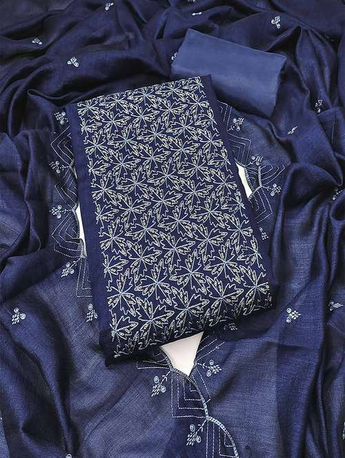 - Look ultra gorgeous in unstitched suits from Peachmode and grab these beautiful suits in navy blue colour.