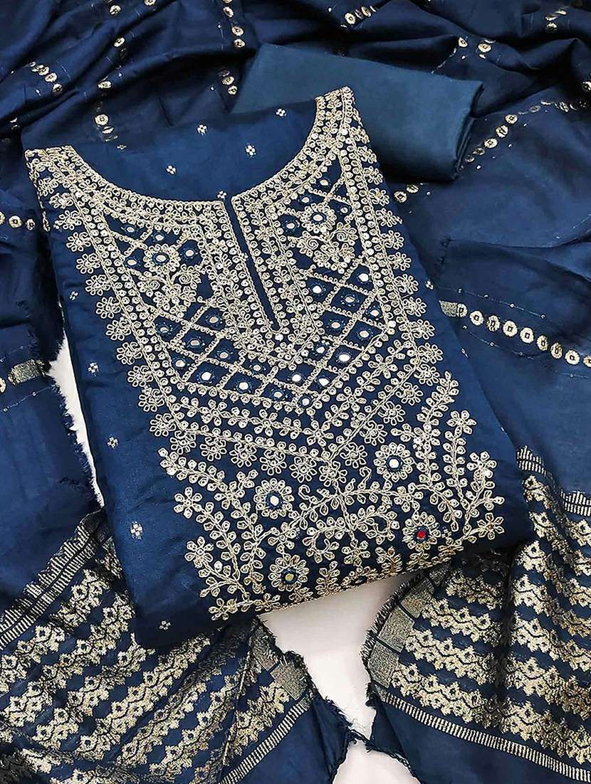 - Look ultra gorgeous in unstitched suits from Peachmode and grab these beautiful suits in blue colour.