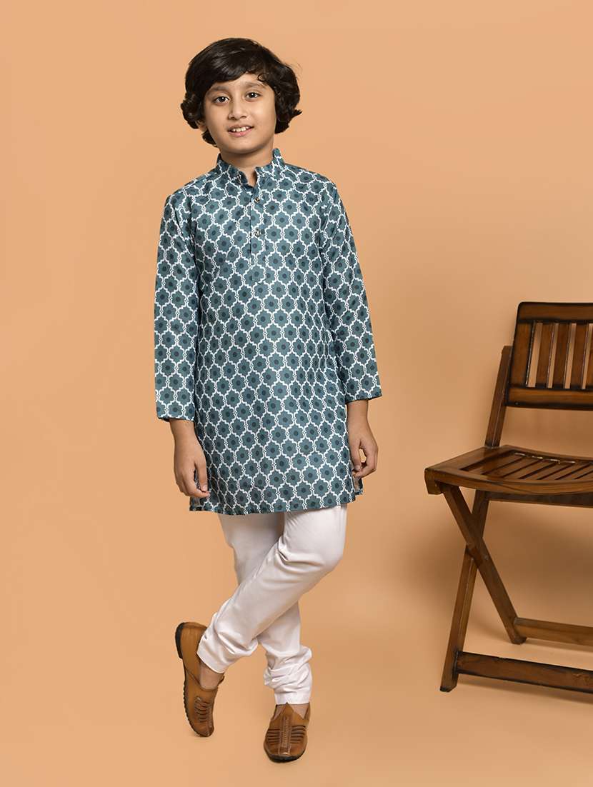 boys printed mandarin neck kurta pyjama set - 21787223 - Very Small Image - 1