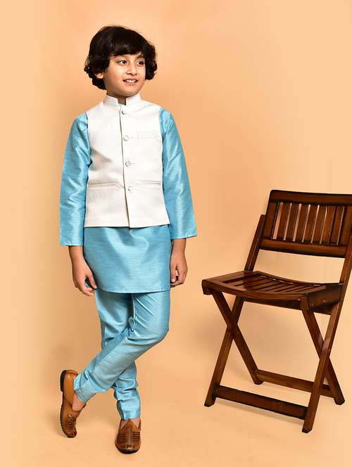 boys solid mandarin neck kurta pyjama ethnic jacket set