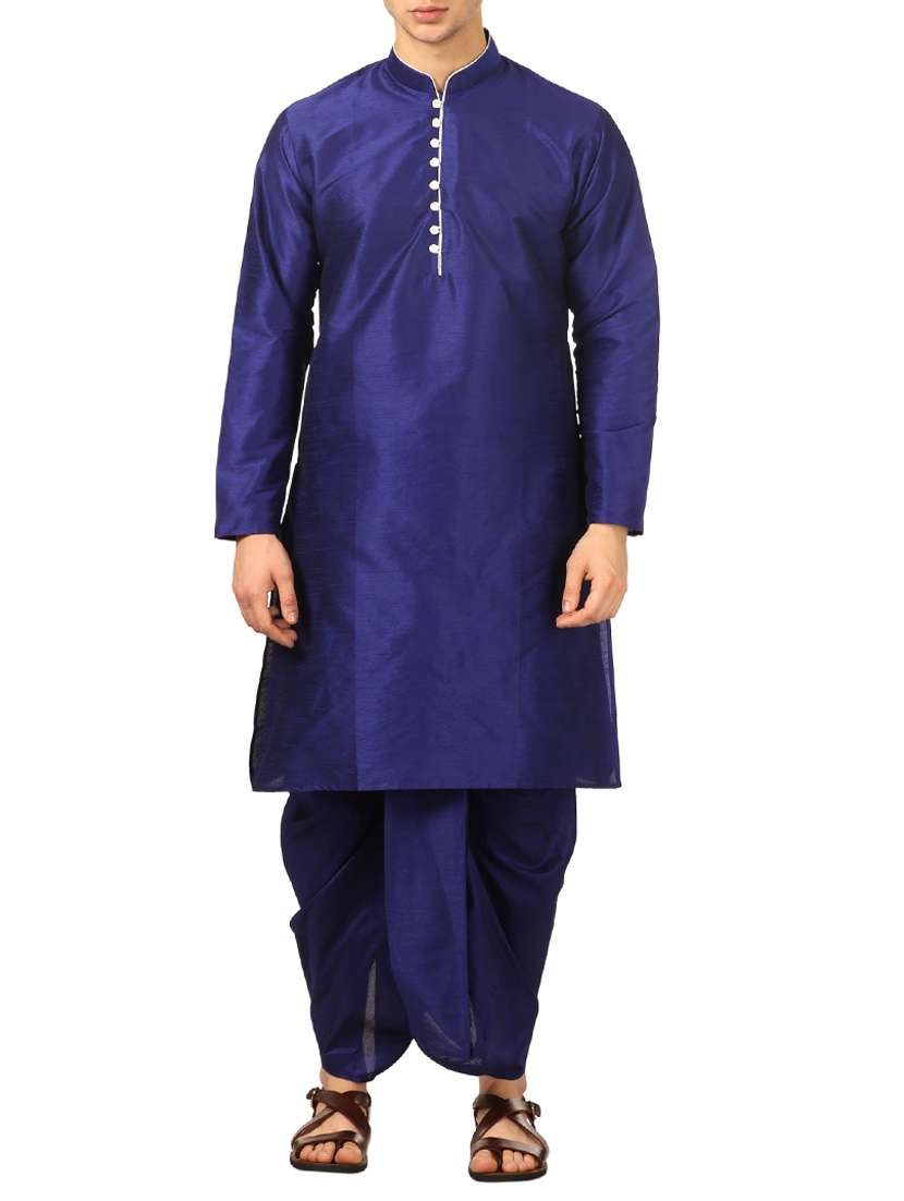 blue silk blend dhoti kurta set