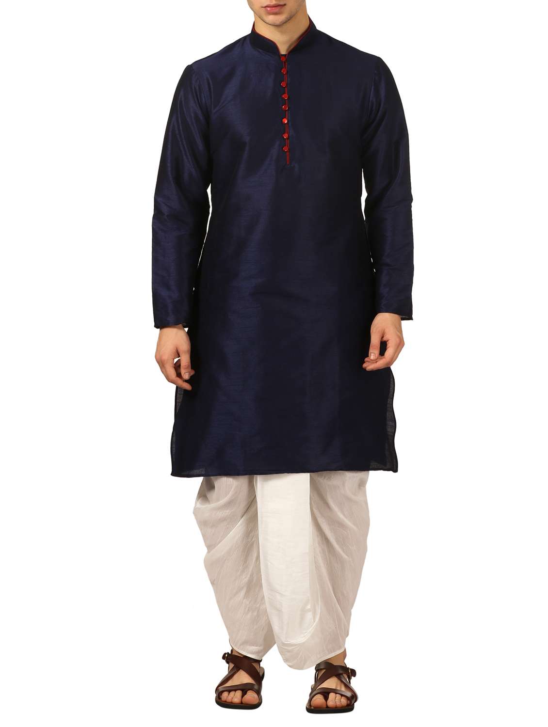 blue silk blend dhoti kurta set - 16134976 - Very Small Image - 1