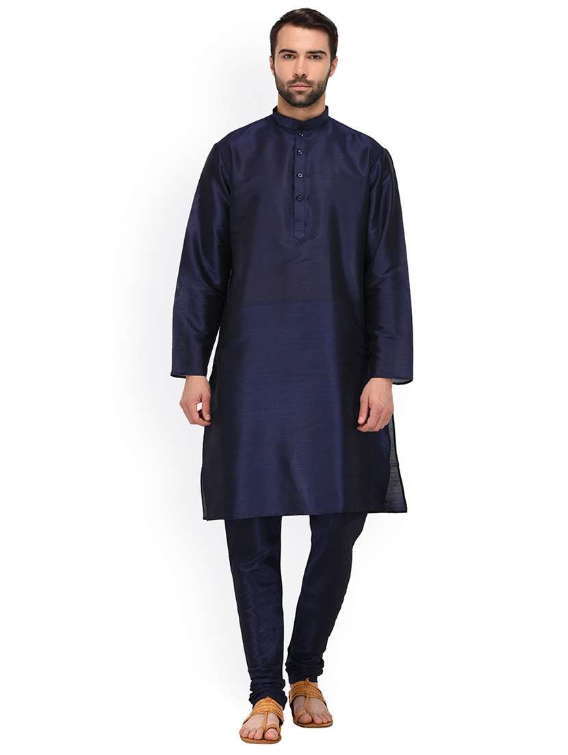 men solid mandarin neck kurta churidar ethnic wear set - 22000364 - Very Small Image - 1