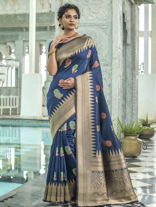 - » blue silk blend banarasi saree with blouse