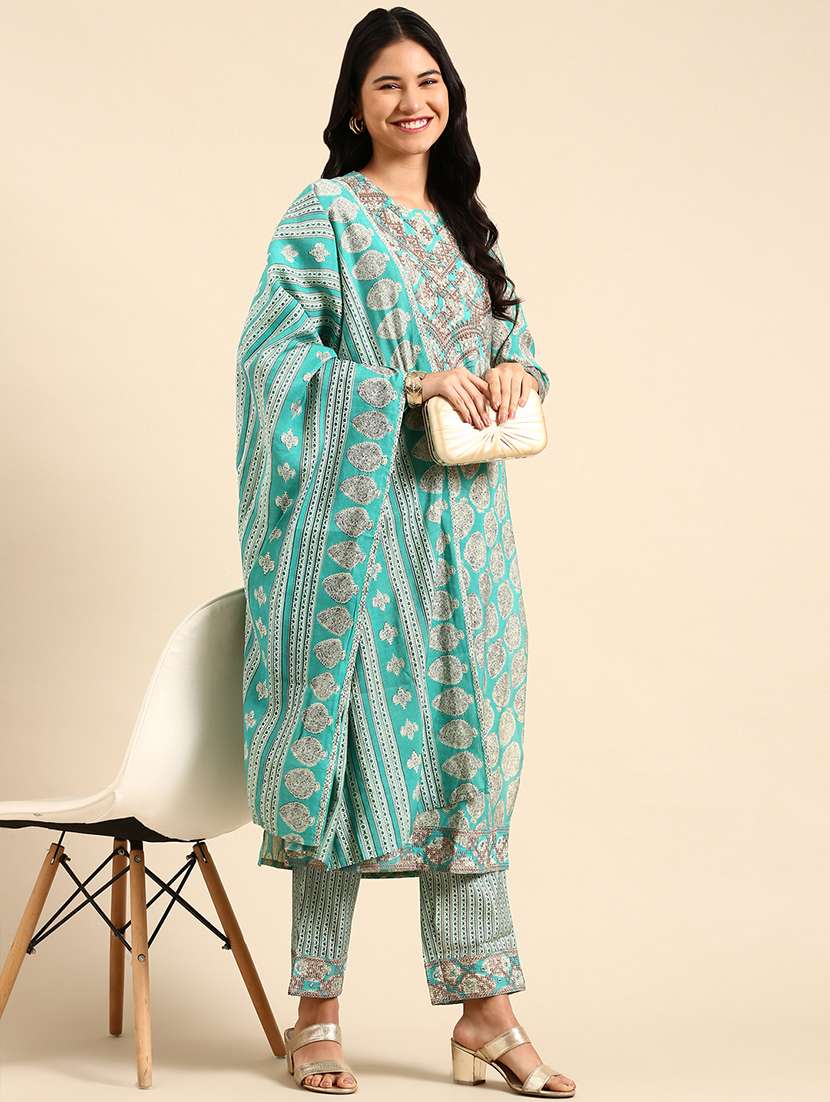 women three quarter sleeve kurta pant with dupatta set - 21550296 - Very Small Image - 1