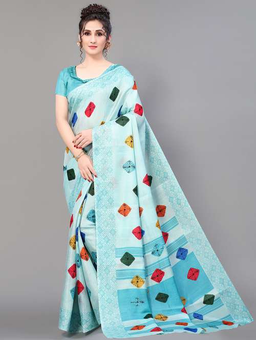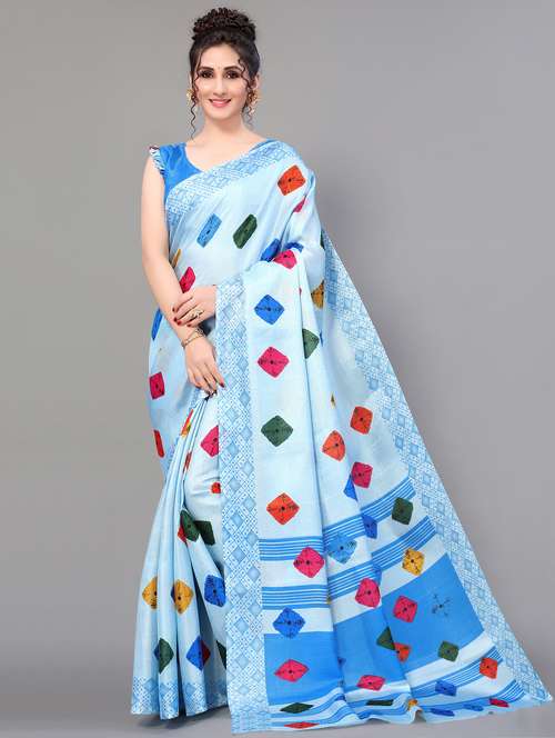 women's geometric light blue colored saree with blouse - 18627150 -  Standard Image - 1 women's geometric light blue colored saree with blouse - 18627150 -  Zoom Image - 1