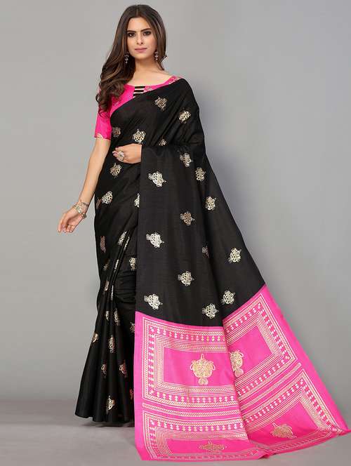 - » foil print floral saree with blouse