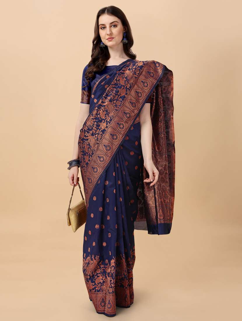 - » women's self design navy blue colored saree