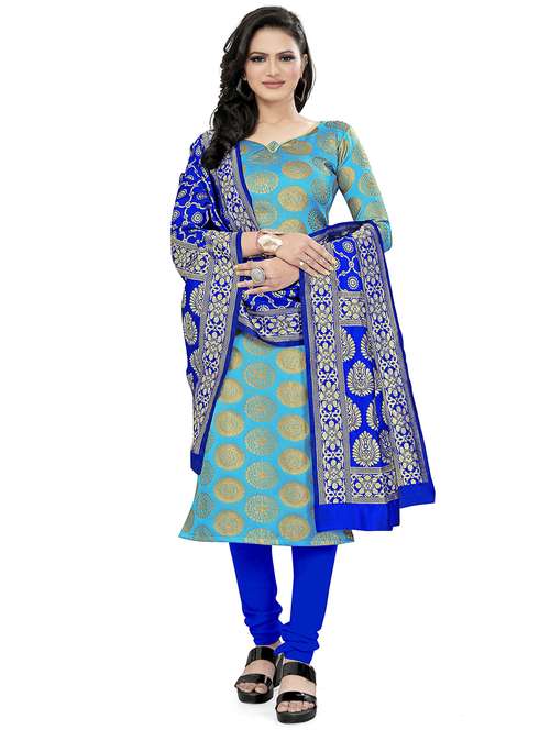 - Look ultra gorgeous in unstitched suits from VredeVogel and grab these beautiful suits in blue colour.