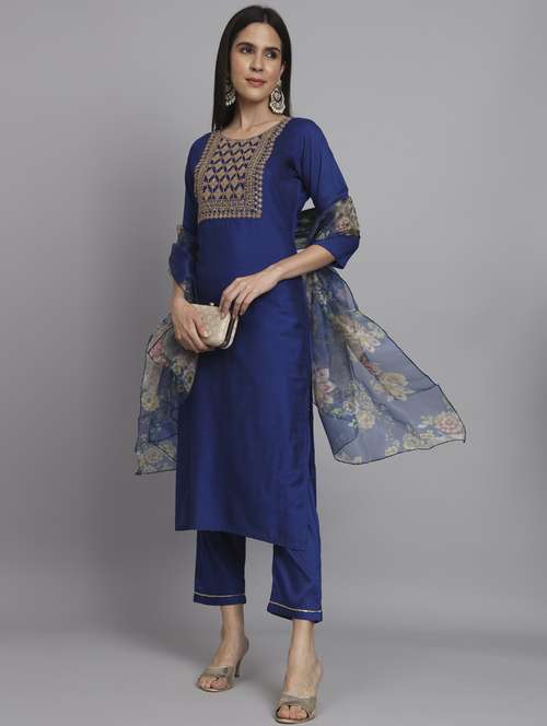 - Find gorgeous sets of ethnic wears in trending designs in navy blue colors suitable for festive wear of occasions.