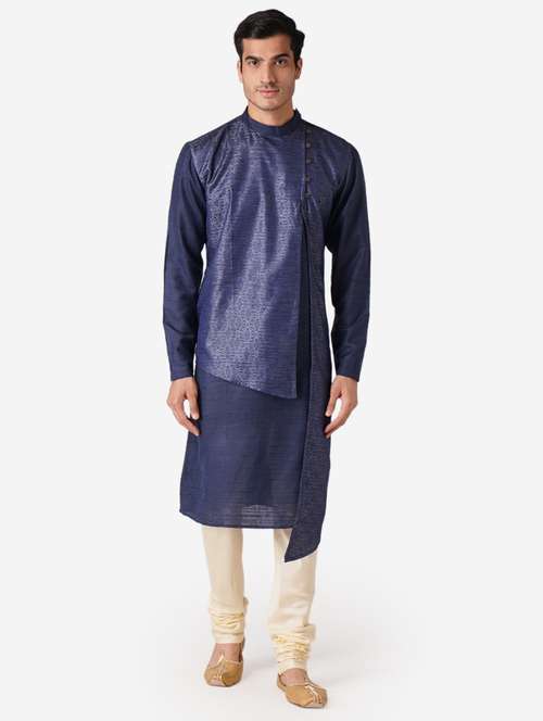 blue silk blend kurta pyjama ethnic wear set