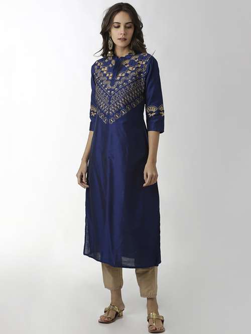- » light navy embroidered a-line kurta