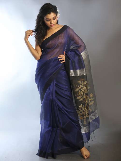 - » blue solid plain saree with blouse