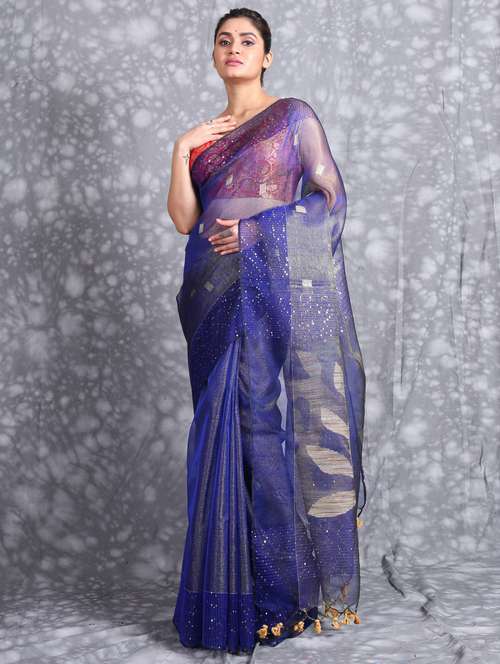 women's self design blue colored saree with blouse - 19968453 - Very Small Image - 1
