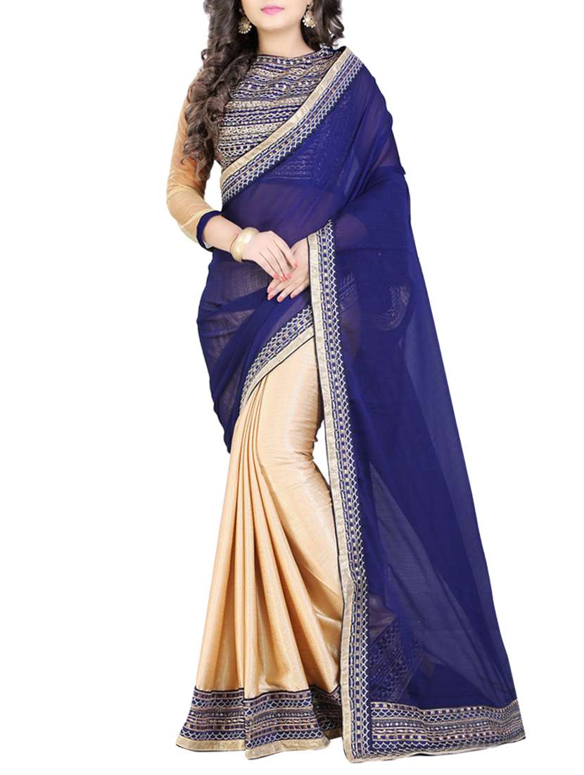 Blue & Beige Silk Half & Half Saree with unstitched blouse piece